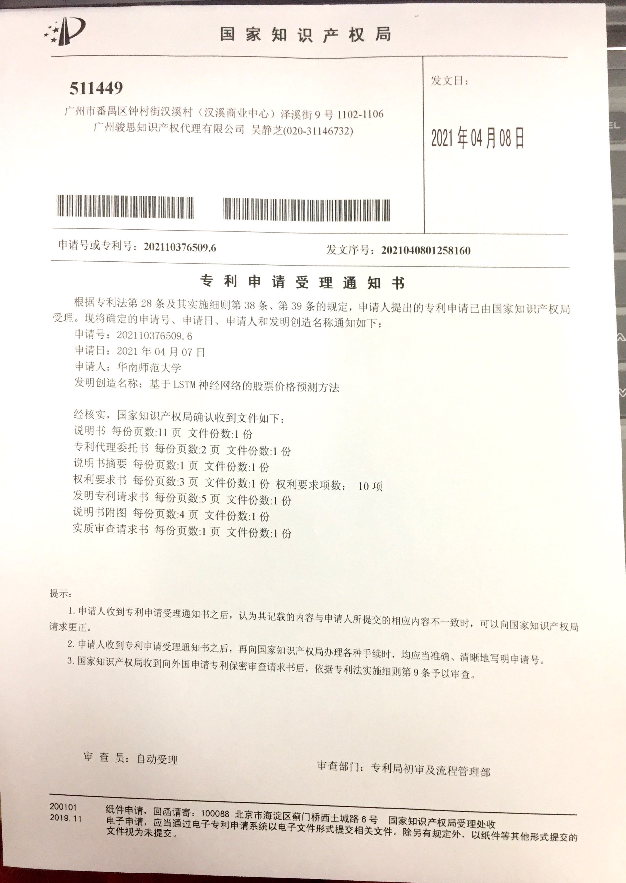 | 中国专利申请:专利申请受理通知书 | 专利申请号 |