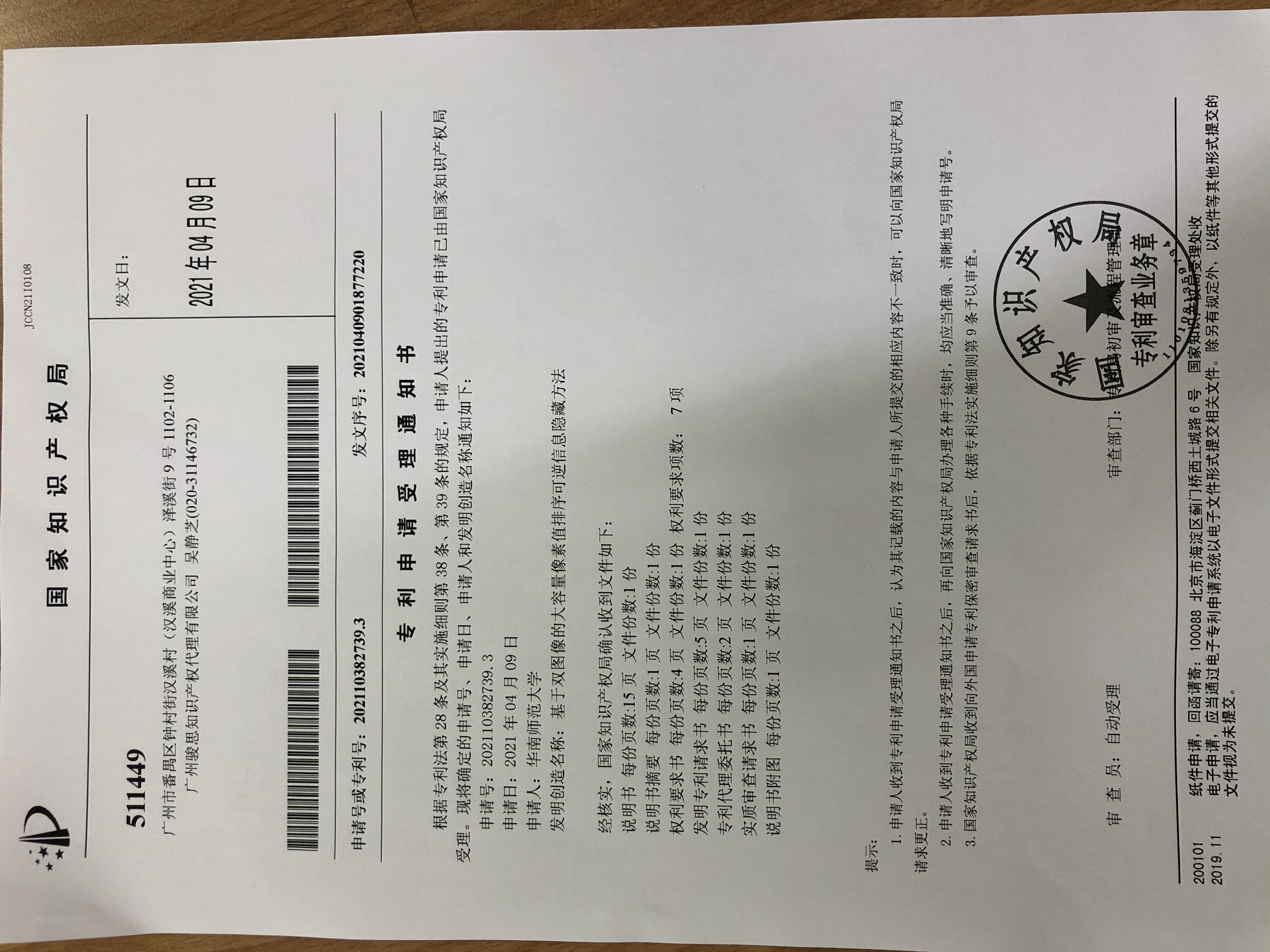 | 741-2021104458057 可见光通信功率分配方法、装置及计算机可读存储介质 专利申请受理通知书.pdf | CN2021104458057 |